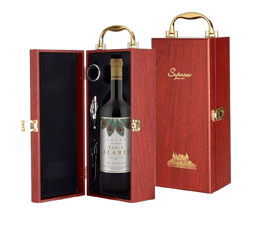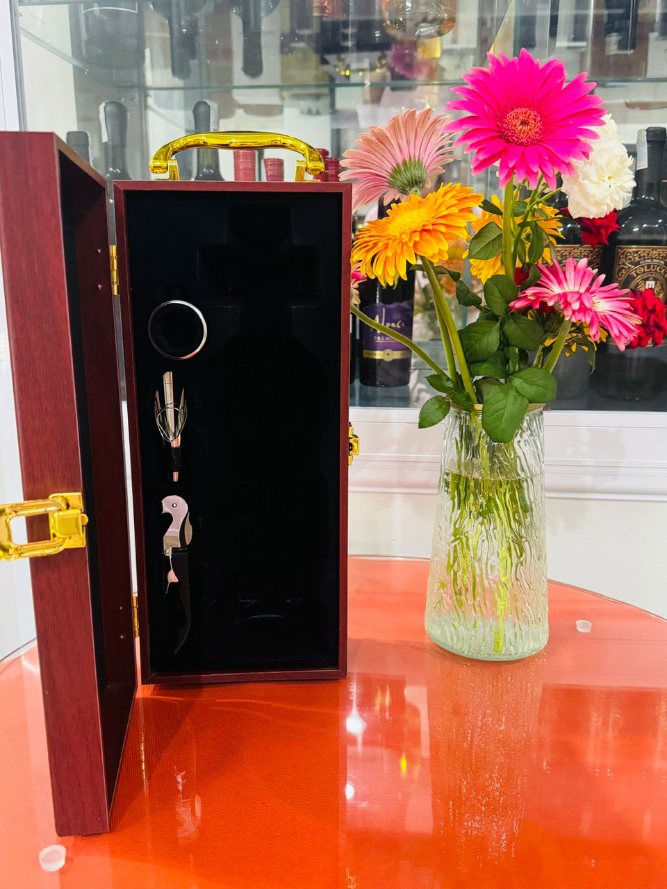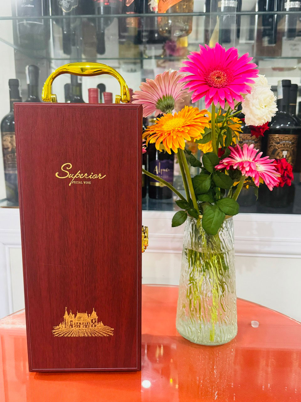 Hộp đựng 1 chai rượu bằng gỗ màu nâu cam
