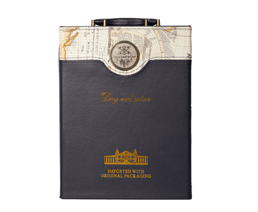 Hộp đựng rượu Vang bản đồ bằng Da loại 2 chai xanh Navy