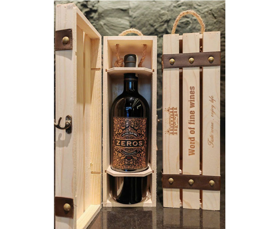 Set quà tặng hộp gỗ 1 chai vang Ý Zeros