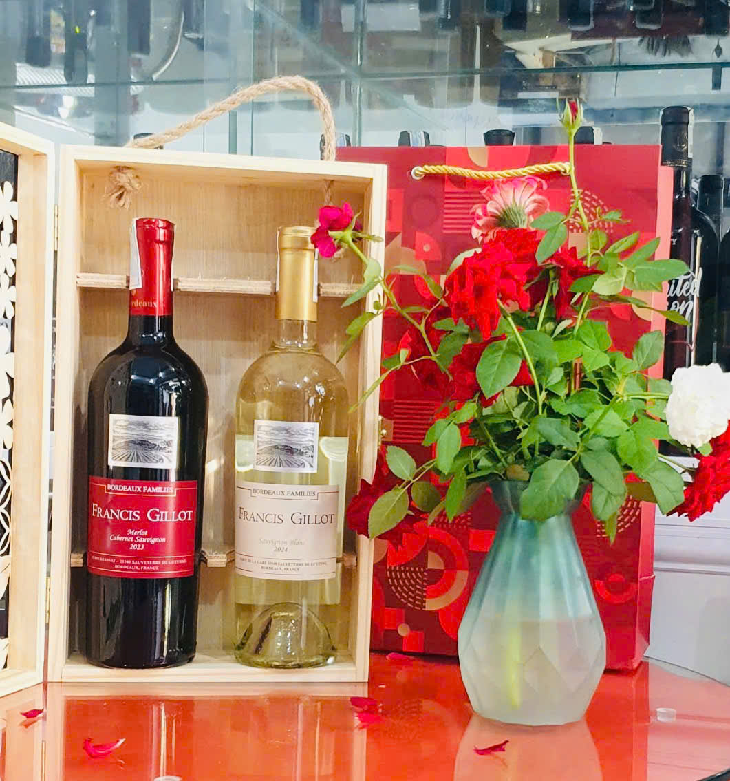 Set Quà Tặng Hộp Gỗ 2 Chai Vang Pháp Francis Gillot