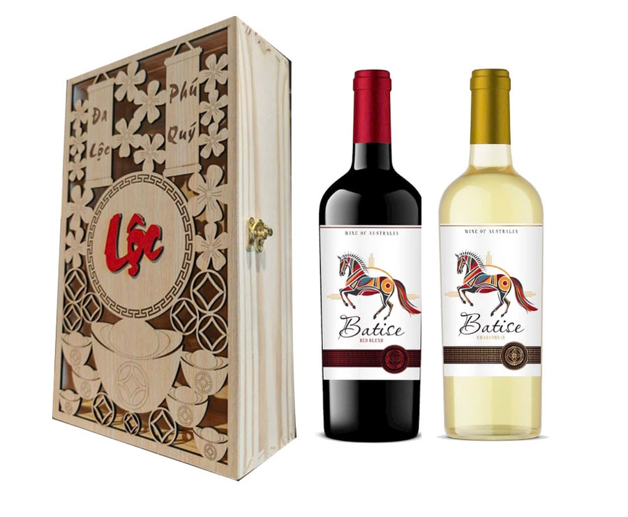 Hộp quà hộp gỗ 2 Chai Vang Úc Batise