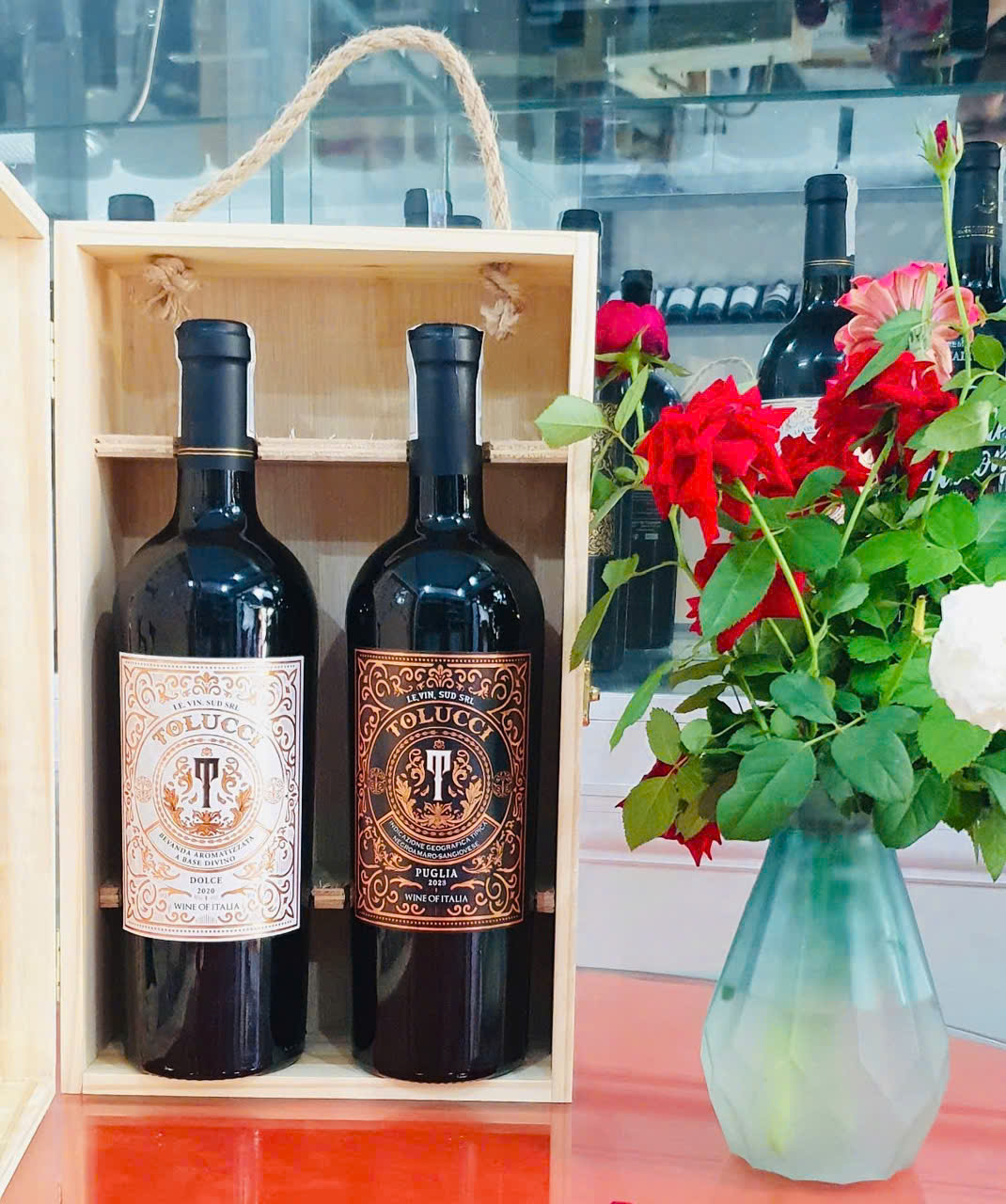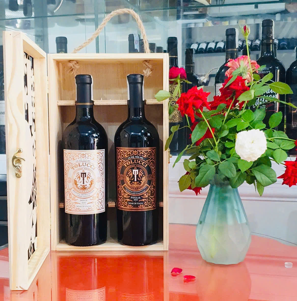 Hộp quà hộp gỗ 2 Chai Vang Ý Tolucci