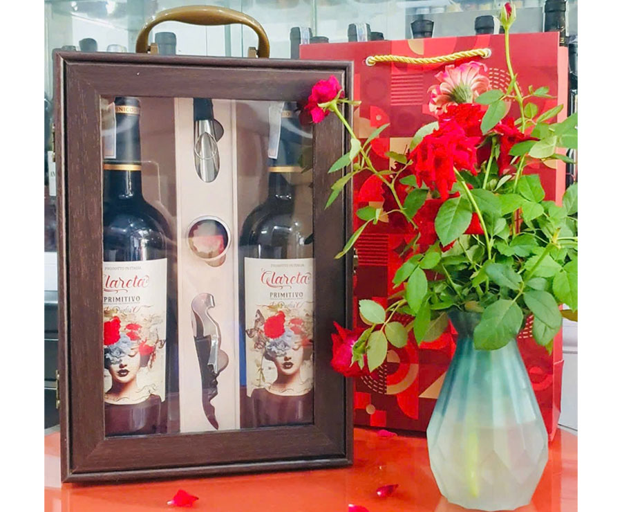 Hộp quà Hộp Gỗ Mặt Kính 2 chai Vang Ý CLARETA