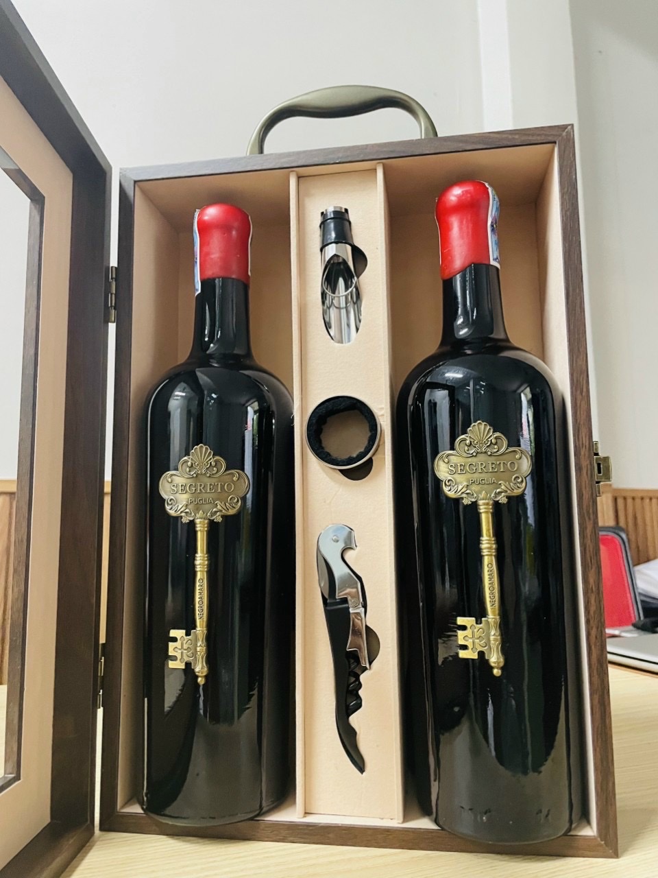 Hộp quà Hộp Gỗ Mặt Kính 2 chai Vang Ý Segreto