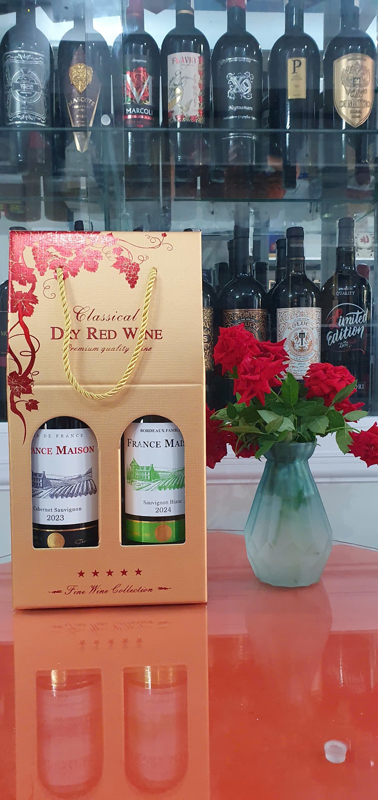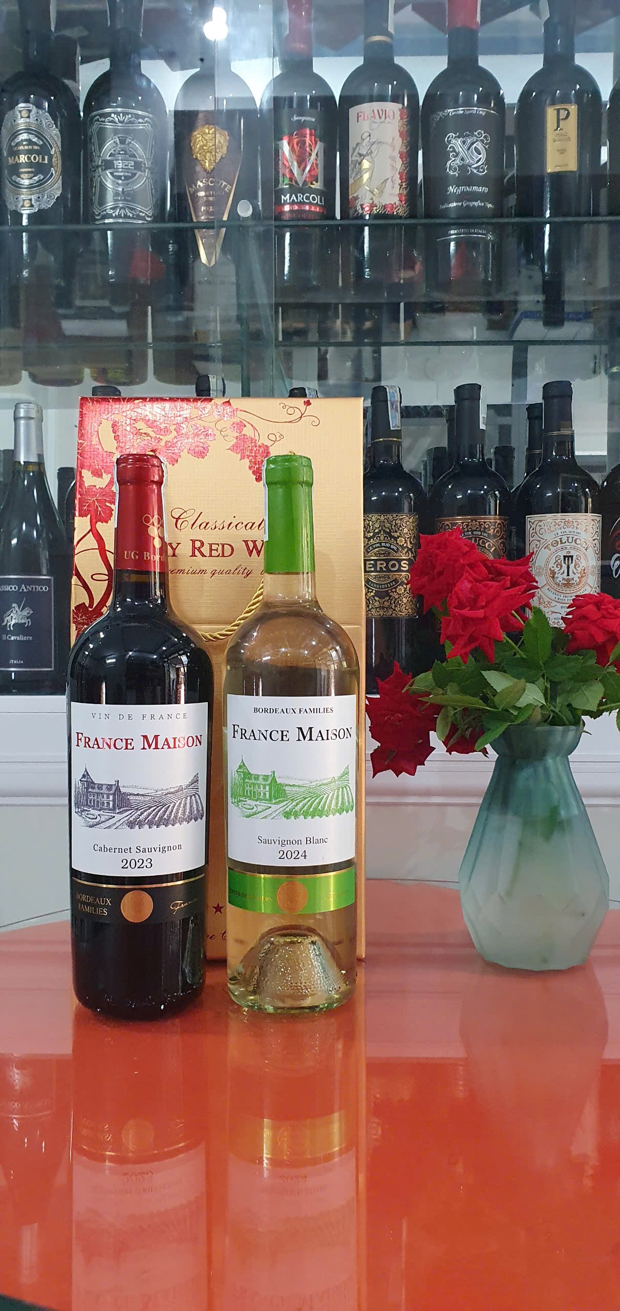 Vang Pháp France Maison đỏ và trắng - Set hộp giấy 2 chai