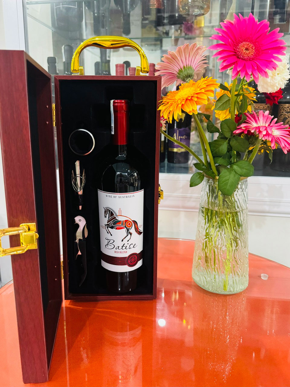 Hộp đựng 1 chai rượu bằng gỗ màu nâu cam