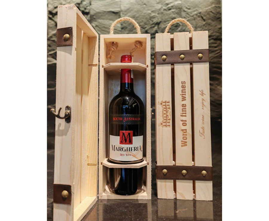 Set quà tặng hộp gỗ 1 chai vang Úc Margheria