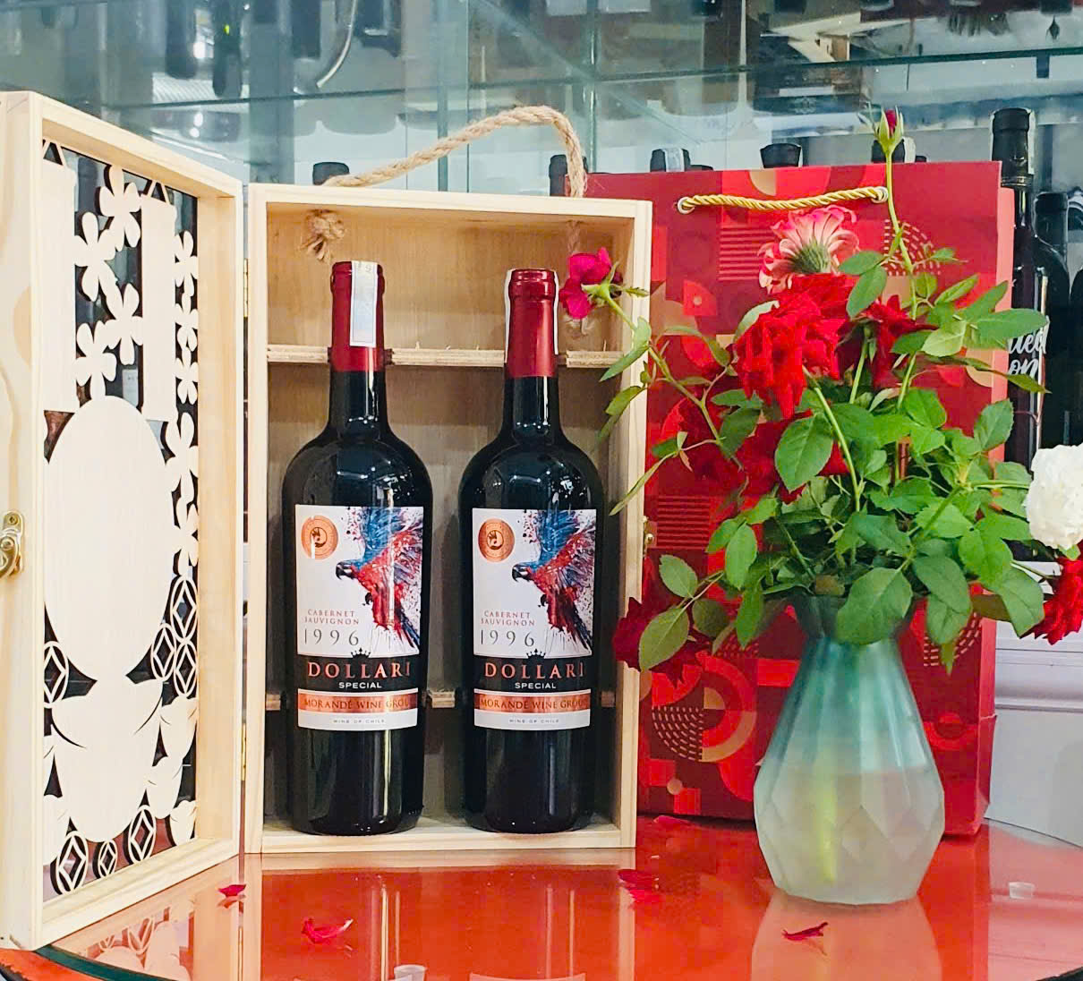 Hộp quà hộp gỗ 2 Chai Vang Chile Dollari Special Cabernet Sauvignon