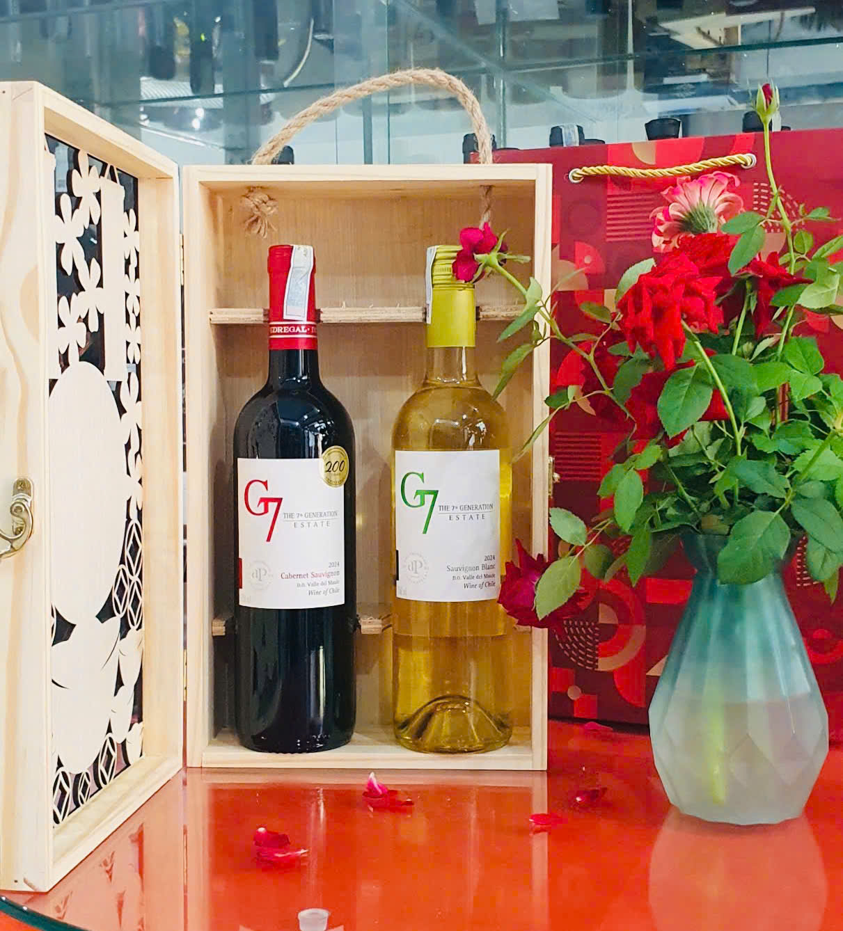 Hộp quà hộp gỗ 2 Chai Vang Chile G7