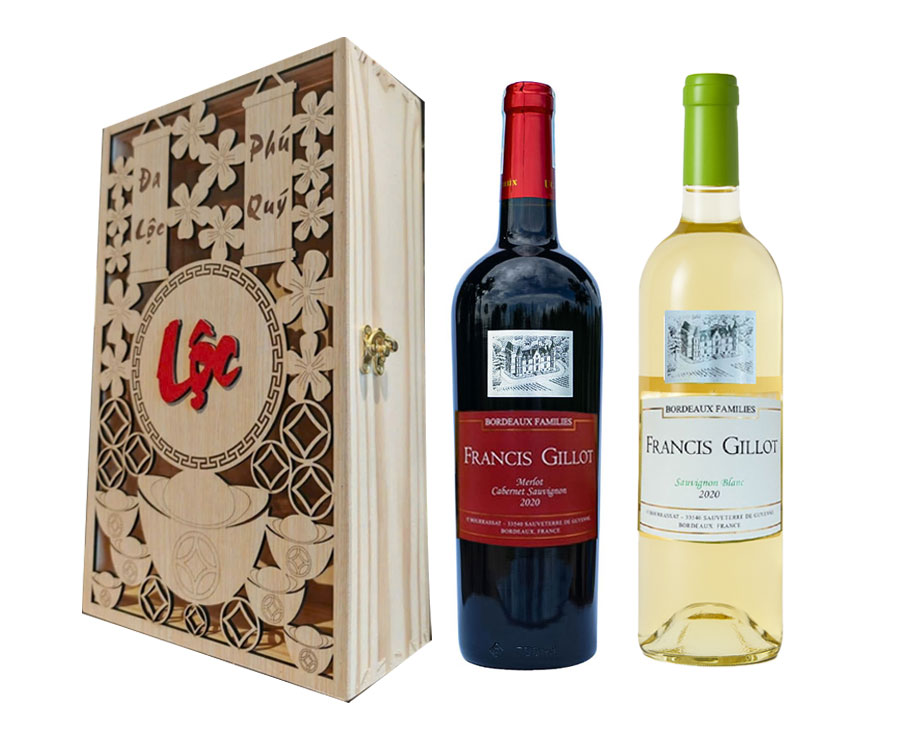 Hộp quà hộp gỗ 2 Chai Vang Pháp Francis Gillot