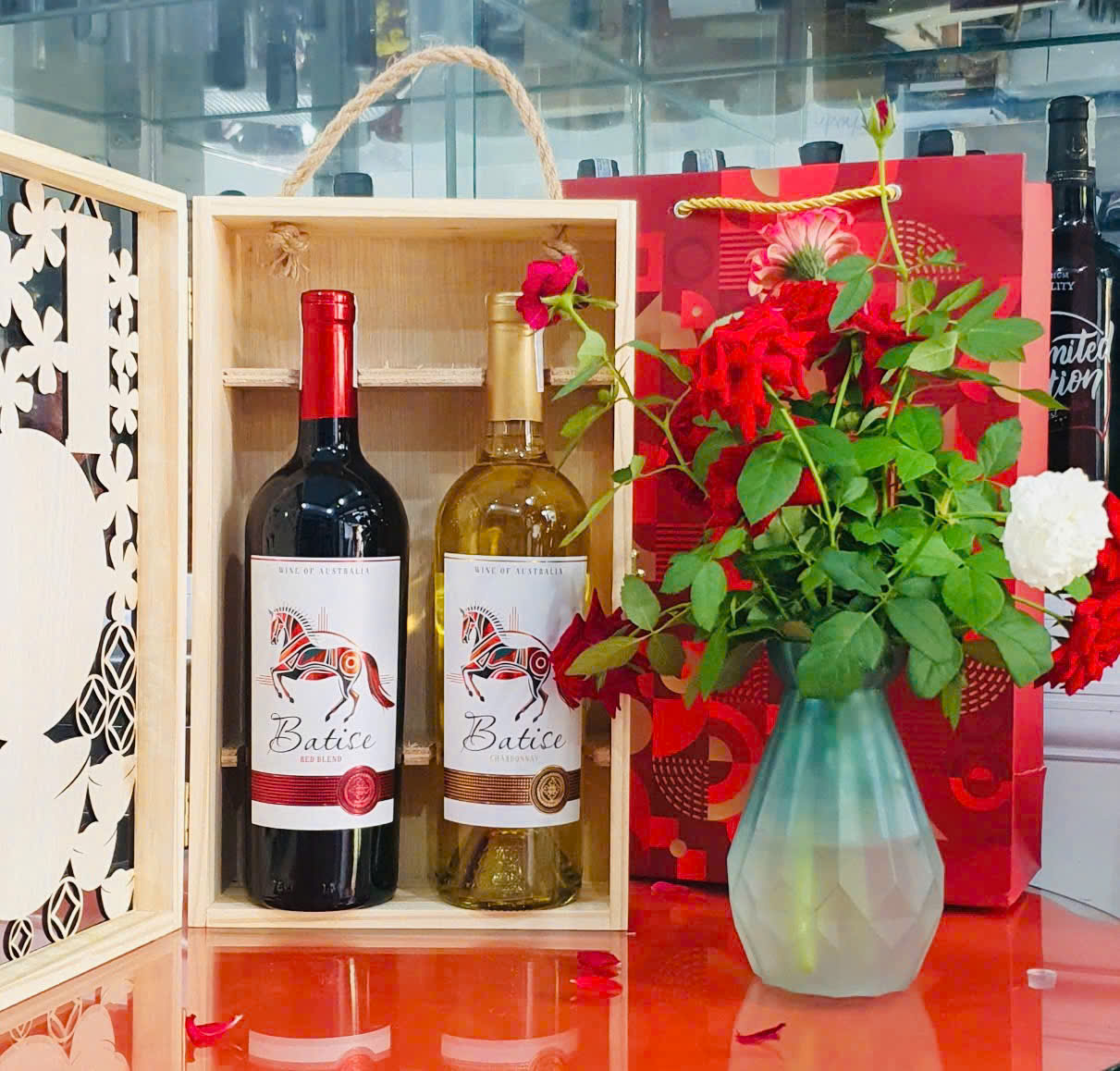 Hộp quà hộp gỗ 2 Chai Vang Úc Batise