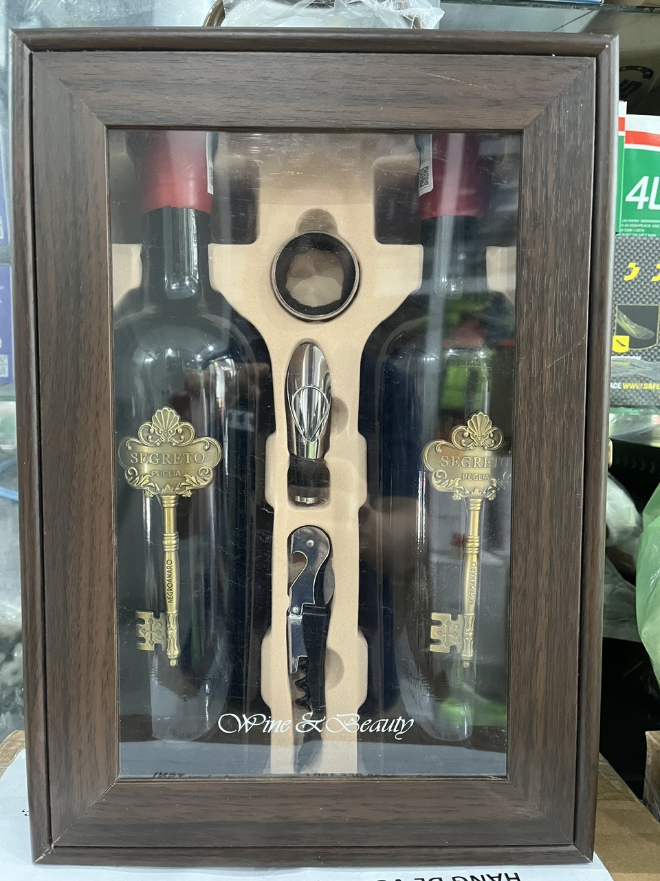 Hộp quà Hộp Gỗ Mặt Kính 2 chai Vang Ý Segreto