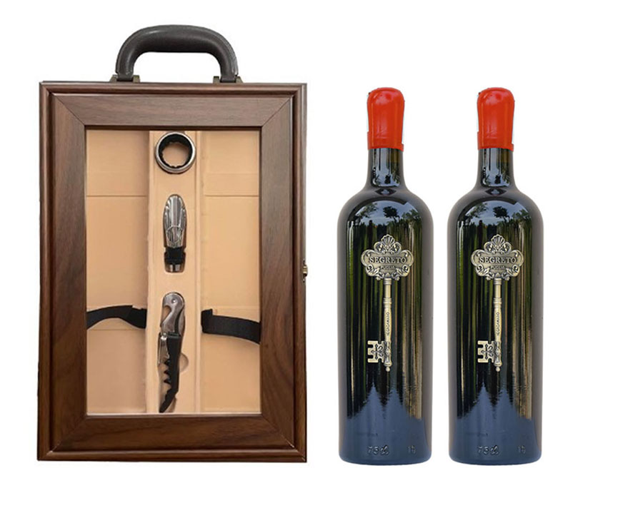 Set Quà Tặng Hộp Gỗ Mặt Kính 2 chai Vang Ý Segreto